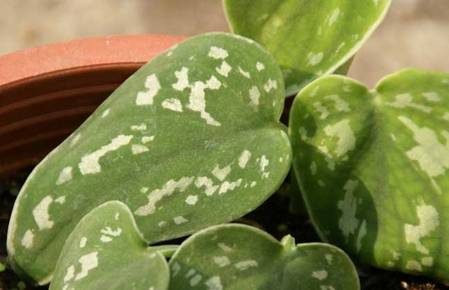 銀星綠蘿葉面絨綠,滿銀綠色斑塊或斑點(diǎn)。