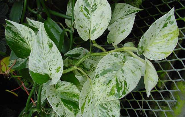 花葉綠蘿是指綠蘿葉片上有顏色各異的斑紋,依據(jù)花紋顏色和特點(diǎn),至今發(fā)現(xiàn)的有3個(gè)變種: