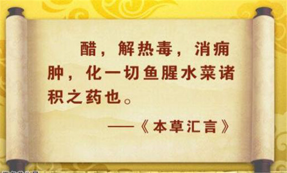 治湯火灼傷:即以酸醋淋洗,并以醋泥涂傷處,很妙,也不留疤痕。